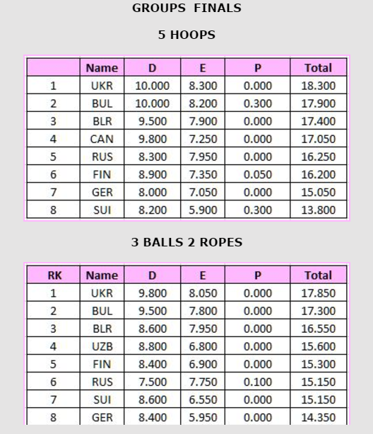 Na competição de conjuntos seniores subiram ao pódio: Bulgária, Ucrânia e Bielorrússia.