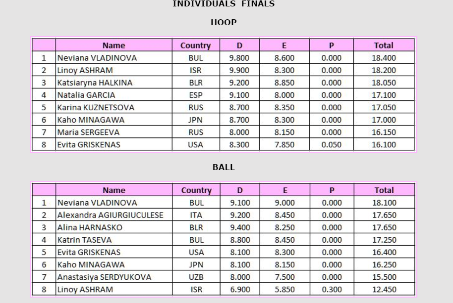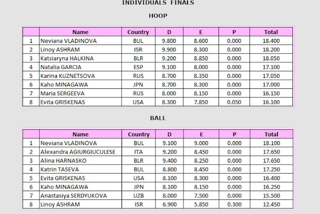 Na competição sénior da Taça do Mundo destacaram-se as ginastas: Neviana Vladinova (BUL), Katrin Taseva (BUL), Linoy Ashram (ISR) e Alina Harnasko (BLR).
